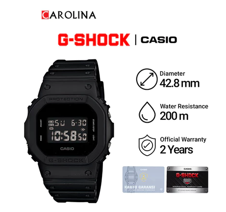 1x Jam Tangan Pria Casio G-Shock DW-5600BB-1D Black Out Digital Dial Black Resin Band,