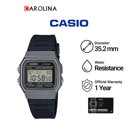 Bagikan Jam Tangan Unisex Casio General F-91WM-1B Digital Dial Black Resin Band